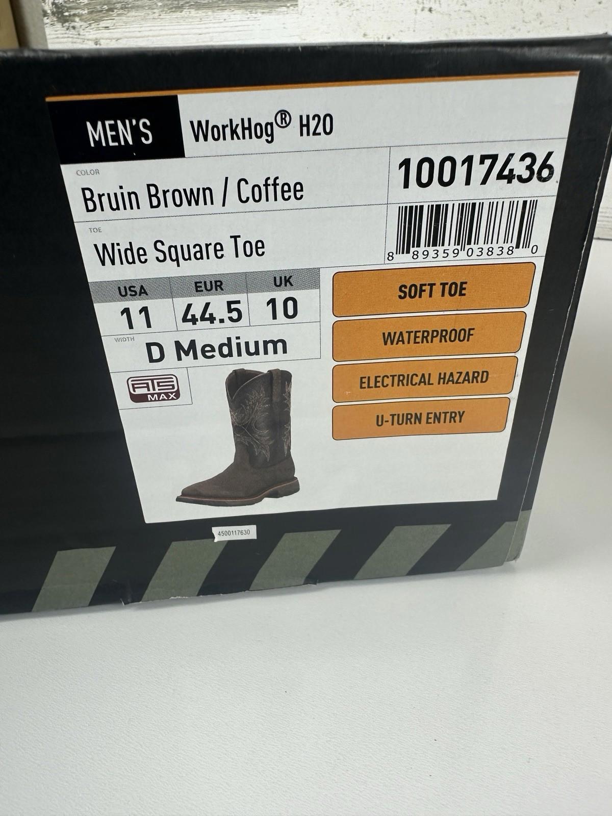 Ariat Workhog Wide Square Toe Waterproof Work Boot Men's 11D, Bruin Brown/Coffee