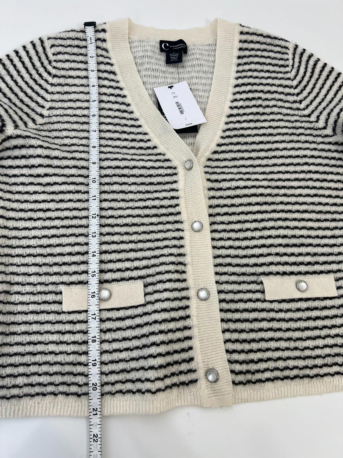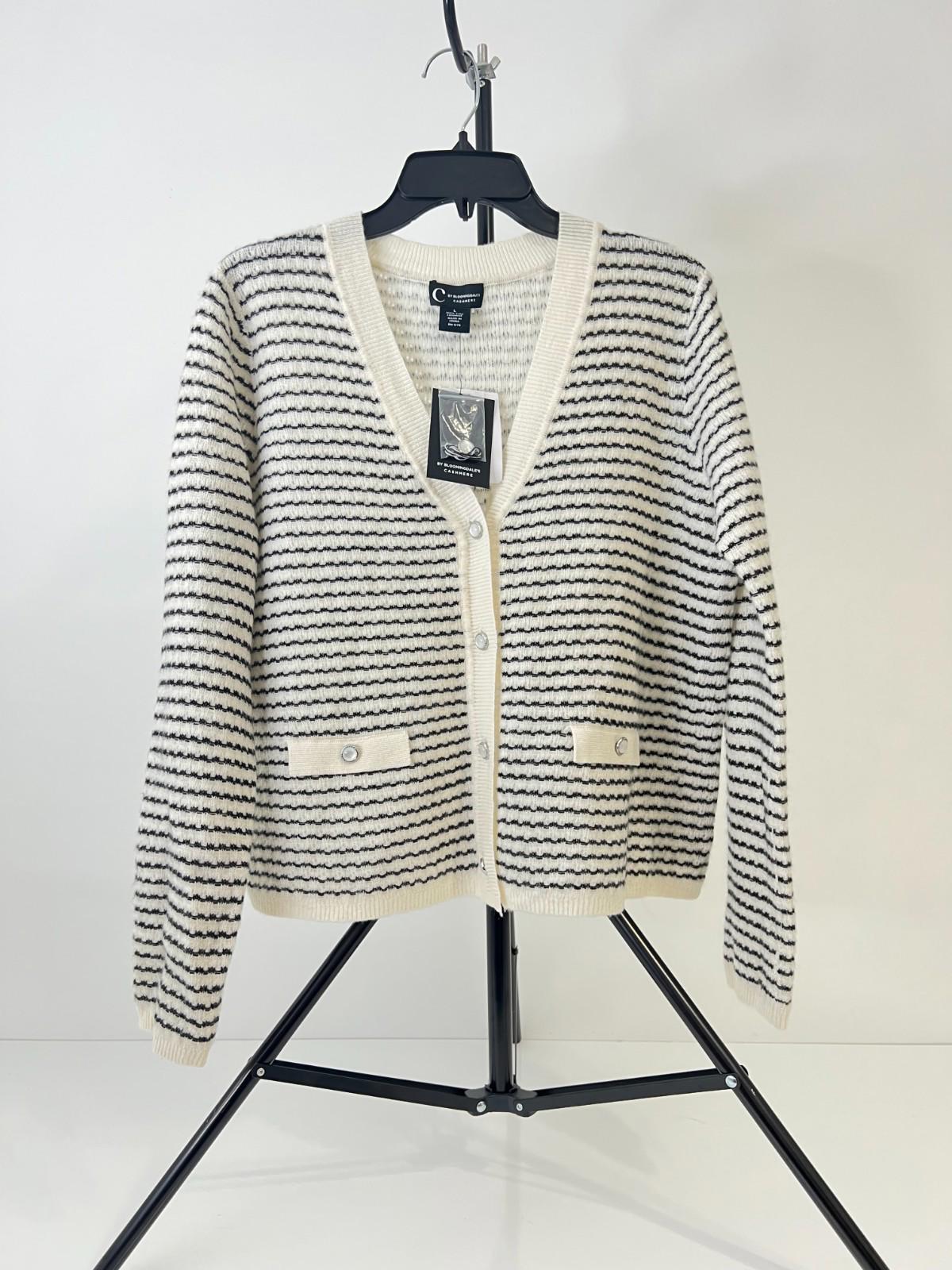 C By Bloomingdales Cashmere Women's Sweater, Color IVOR / BLACK, Size L, V11116