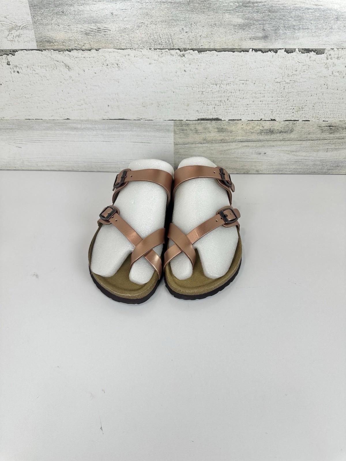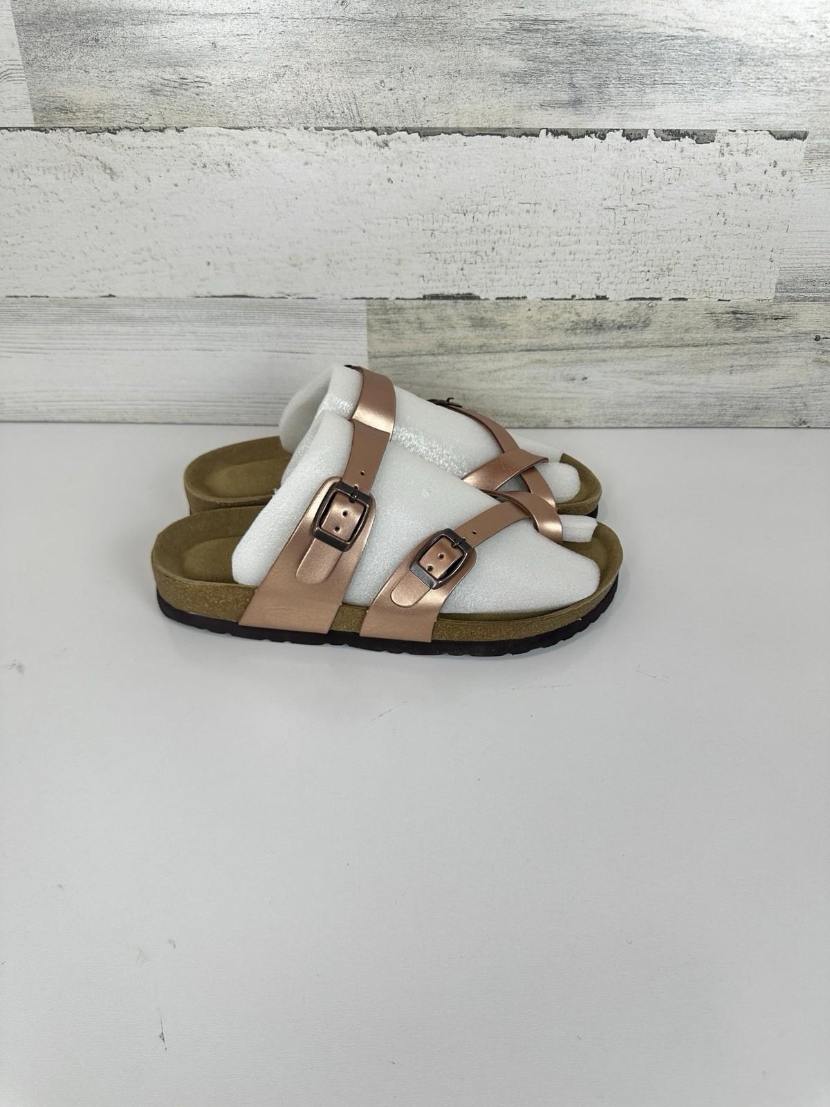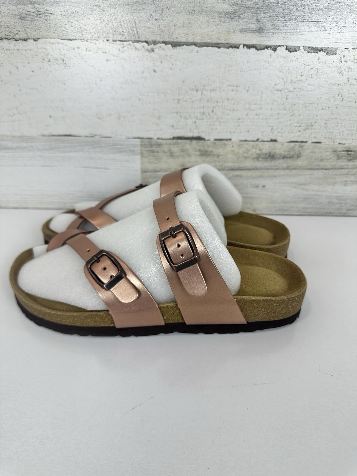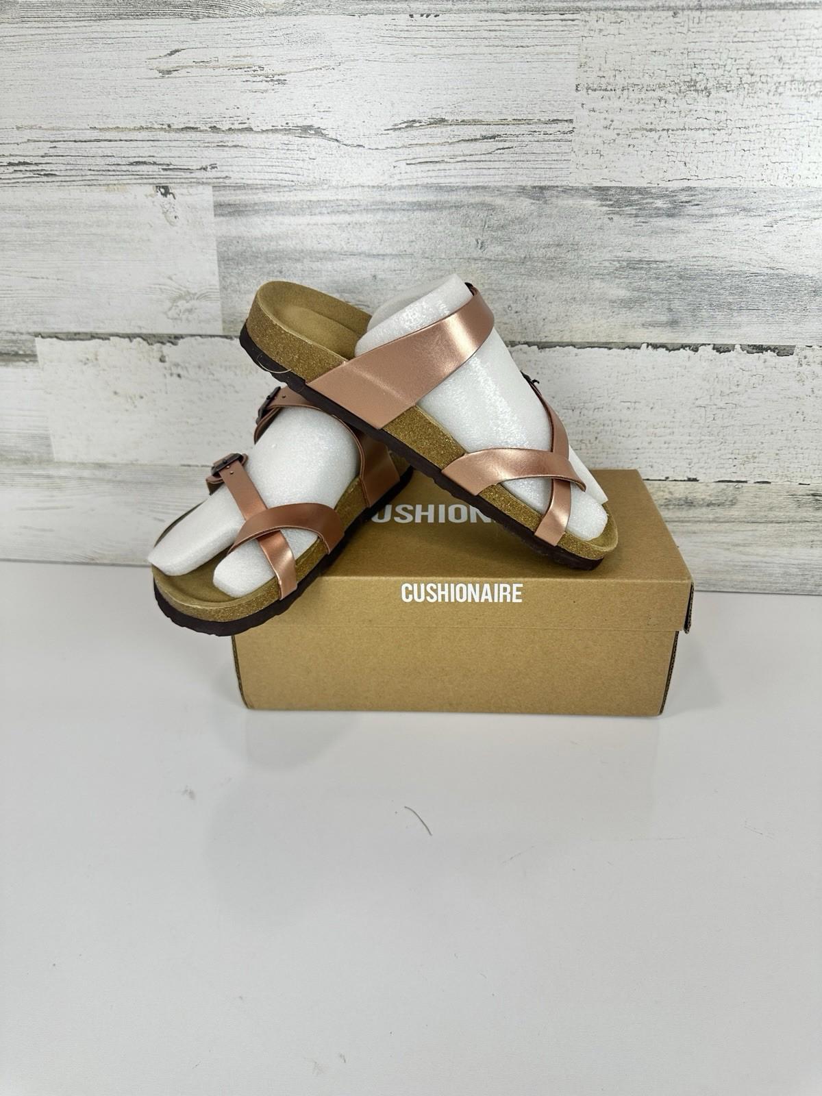 CUSHIONAIRE Women's Leah Crossover Strap Cork Footbed Rose Gold Sandal Size 8 M