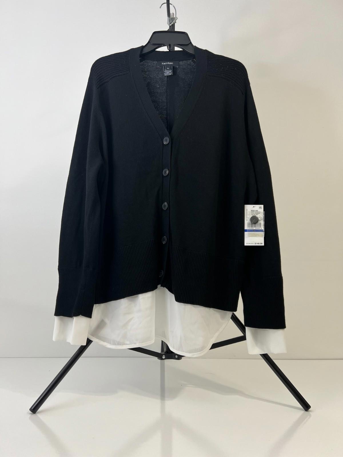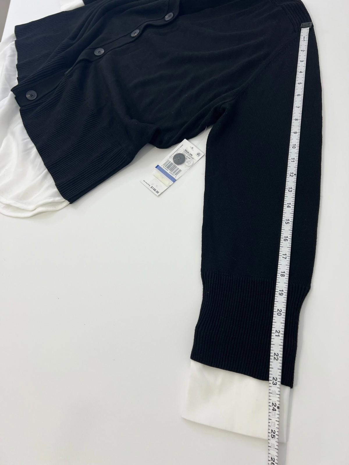 Karen Kane Linett Layered Sweater Cardigan in Black and White XL