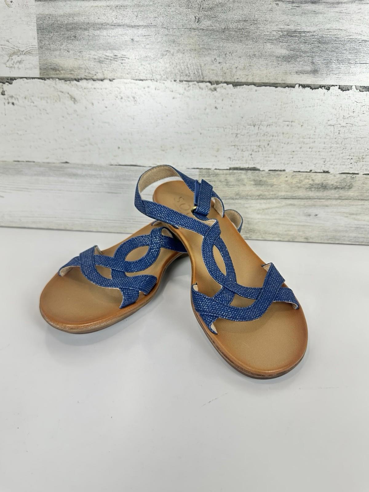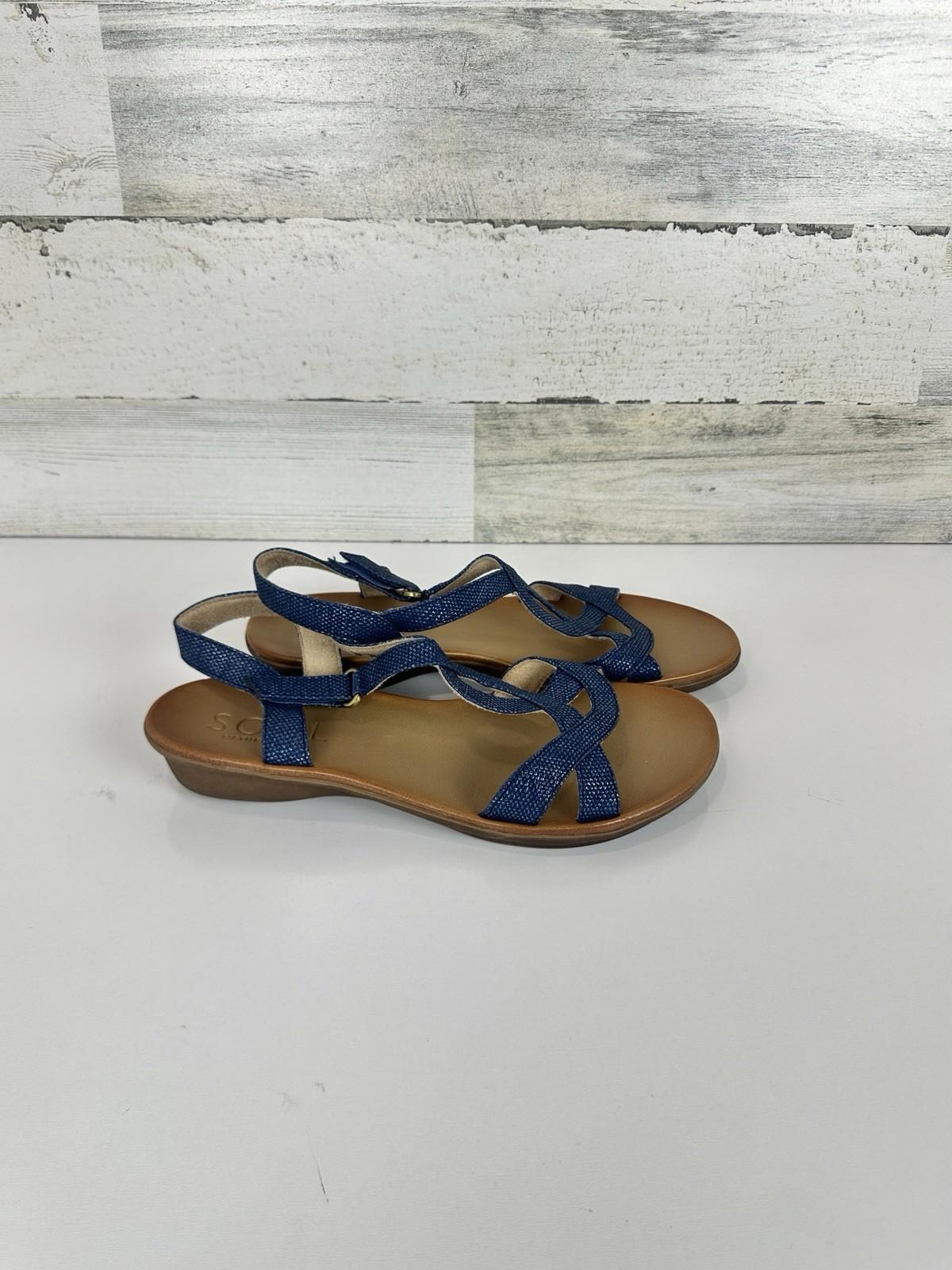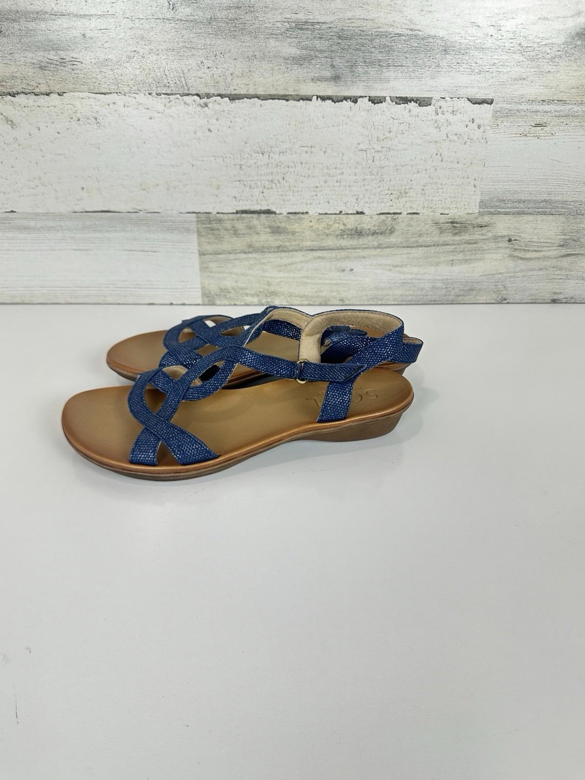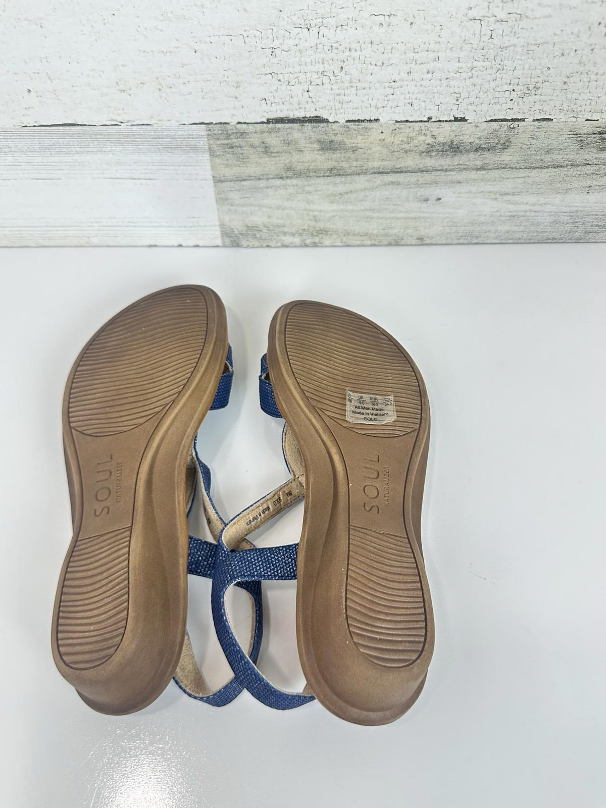Naturalizer SOUL Women's Solo Flat Sandal Blue Textured Fabric 8 M