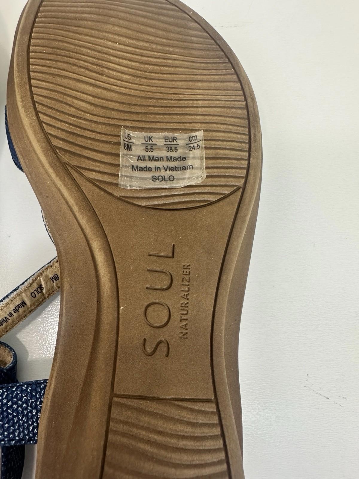 The Naturalizer SOUL Women's Solo Flat Sandal in Blue Textured Fabric is a stylish and comfortable slip-on shoe perfect for... Read more