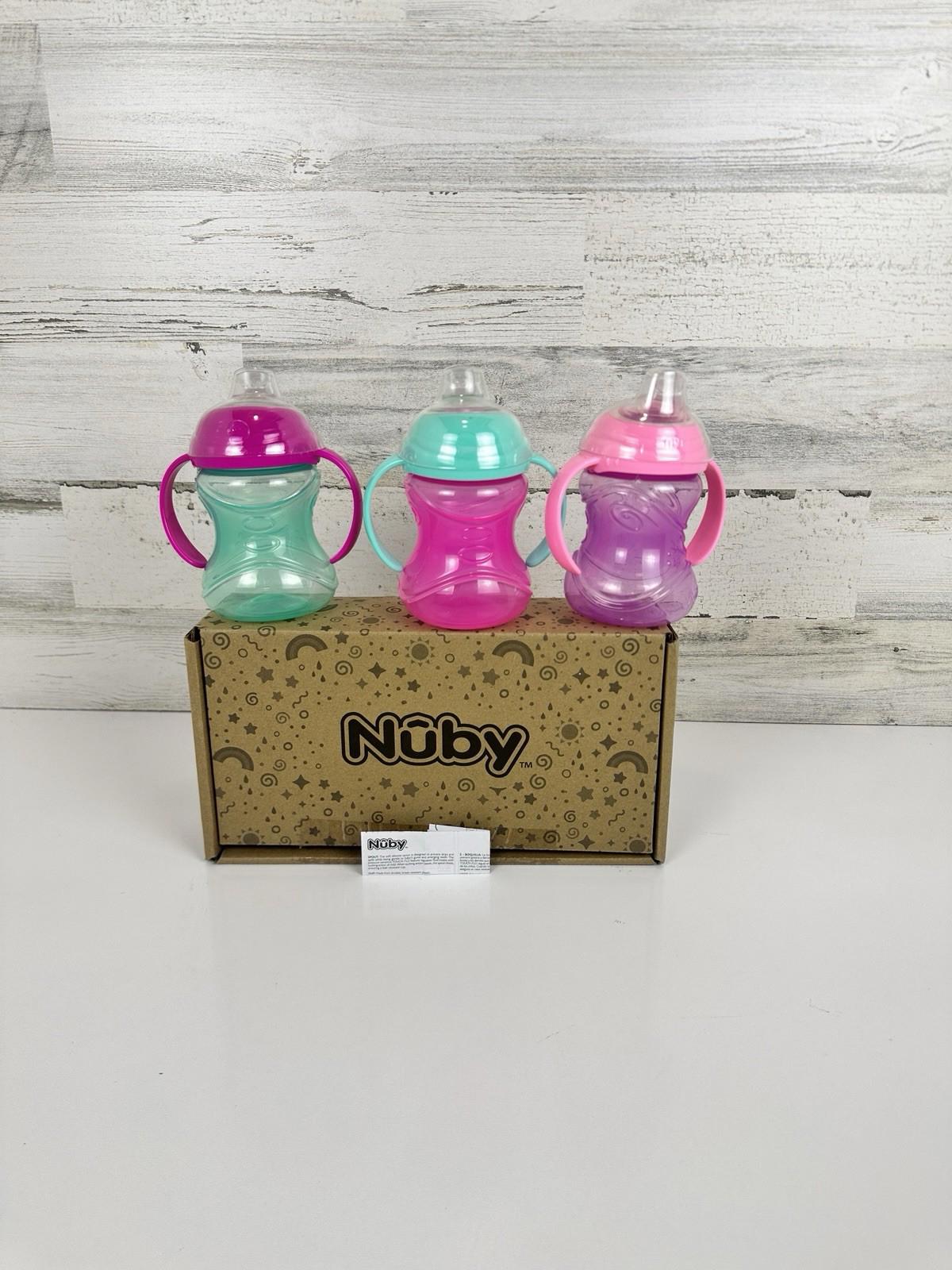 Nuby 3 Piece No-Spill Grip N’ Sip Sippy Cup w Soft Flex Spout, 2 Handles, 10 oz