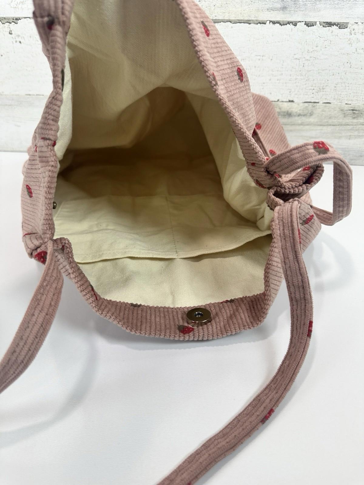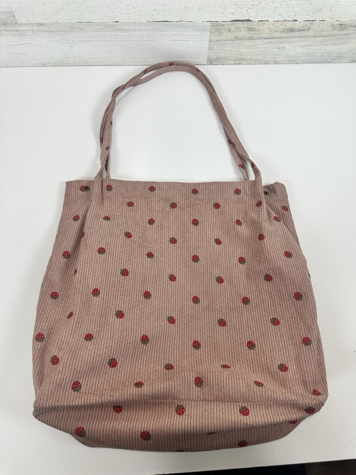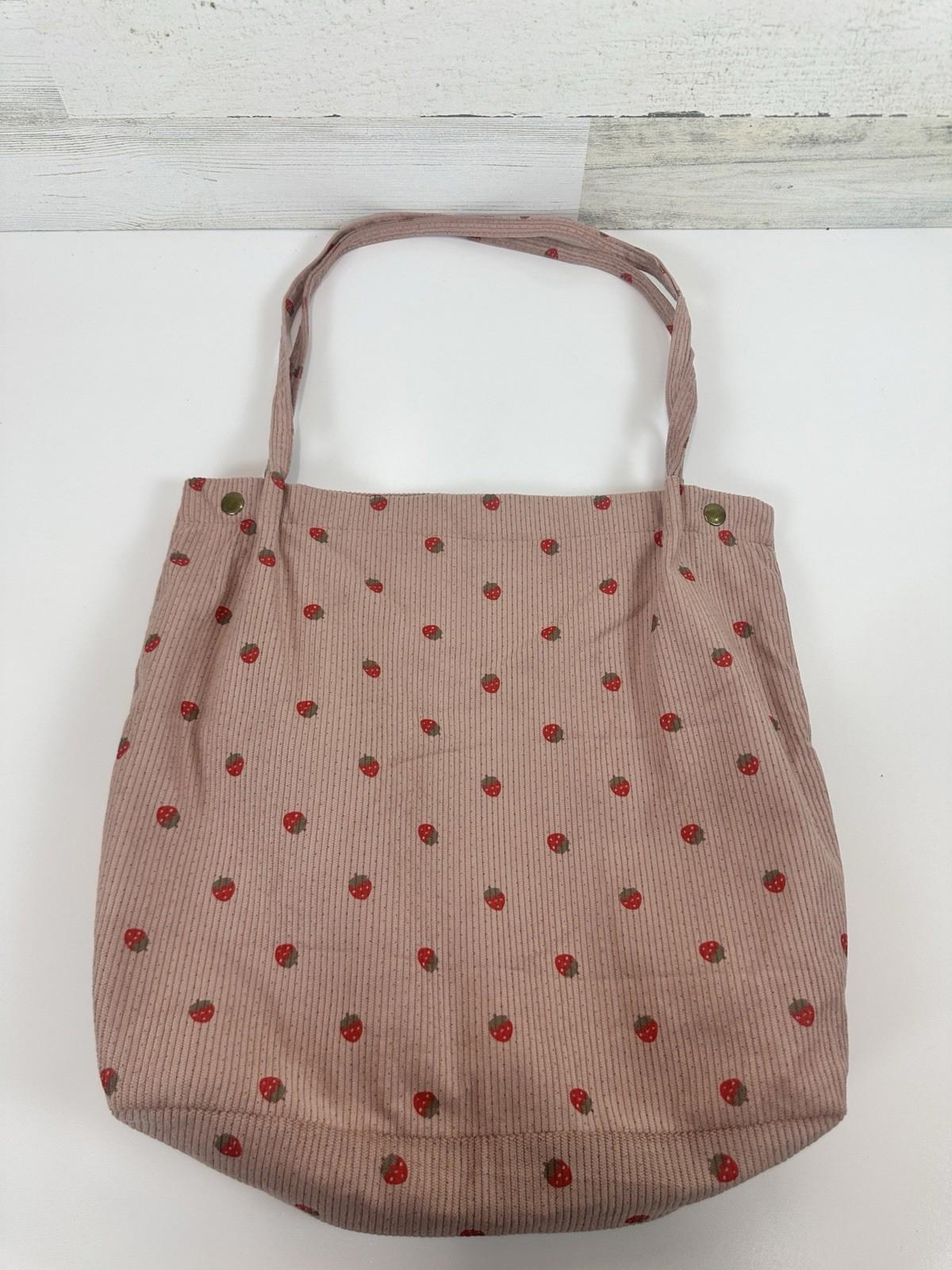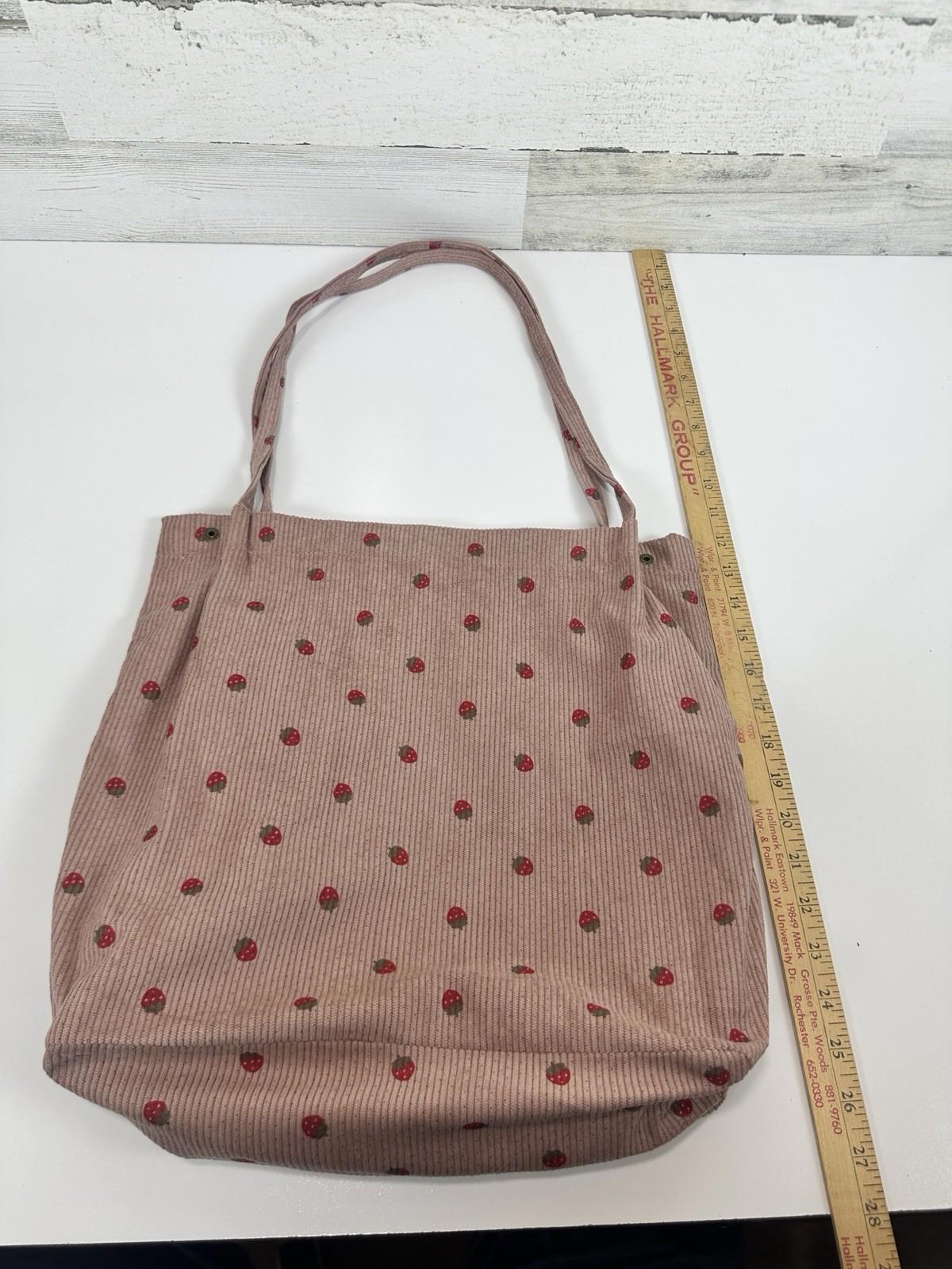 Pink Corduroy Tote Bag Strawberry Pattern Large 13"x12" Shoulder Bag Purse