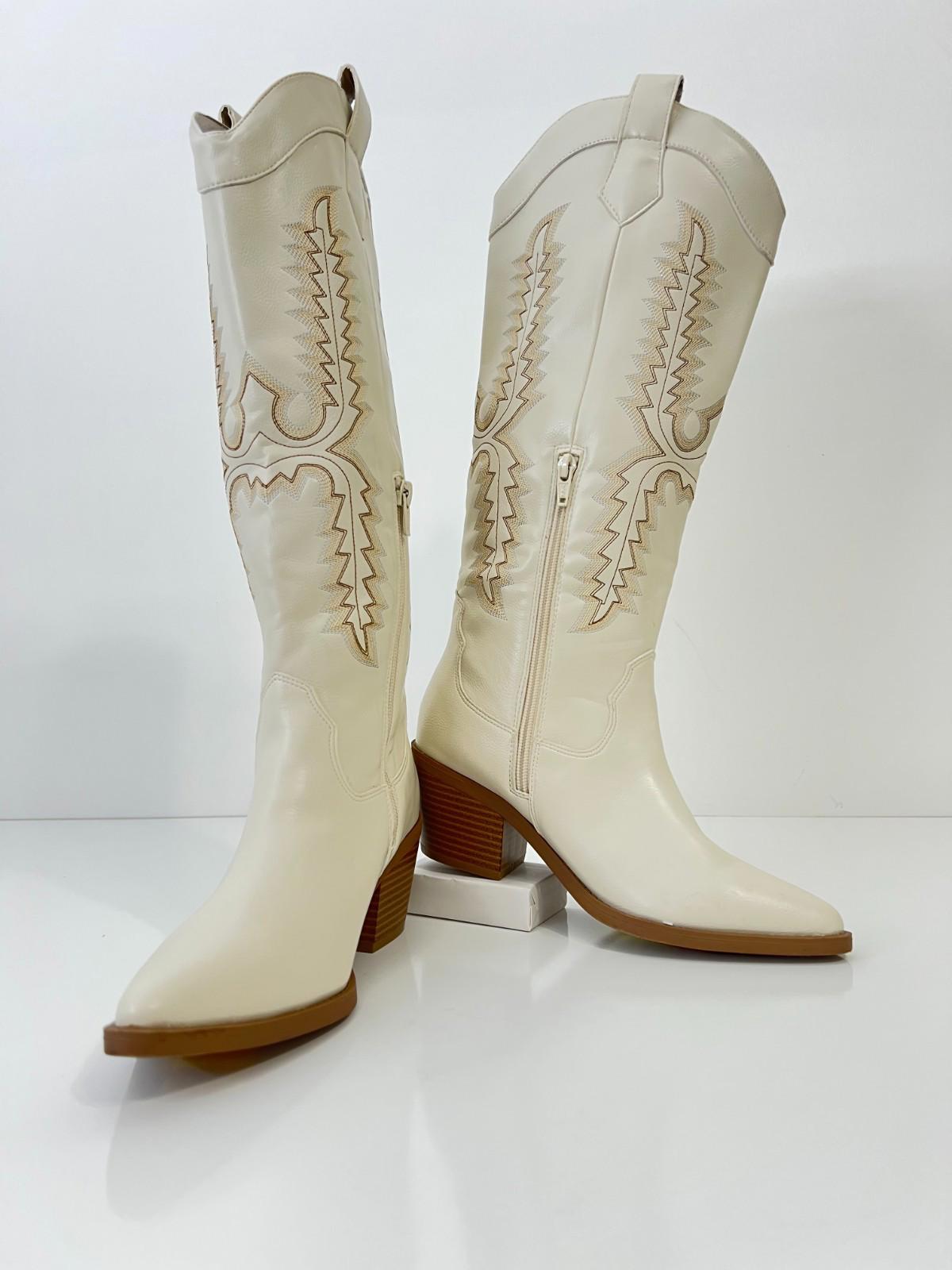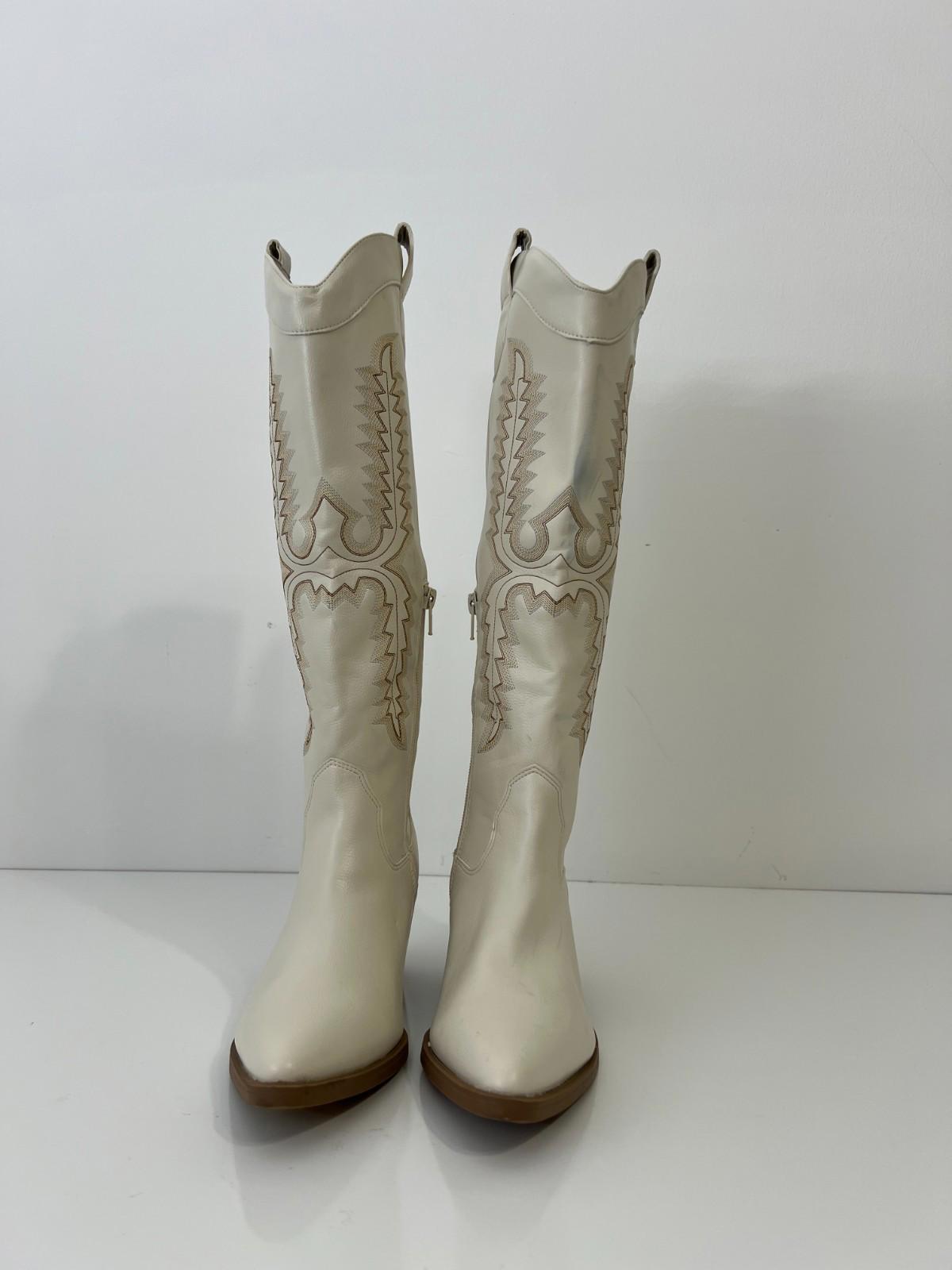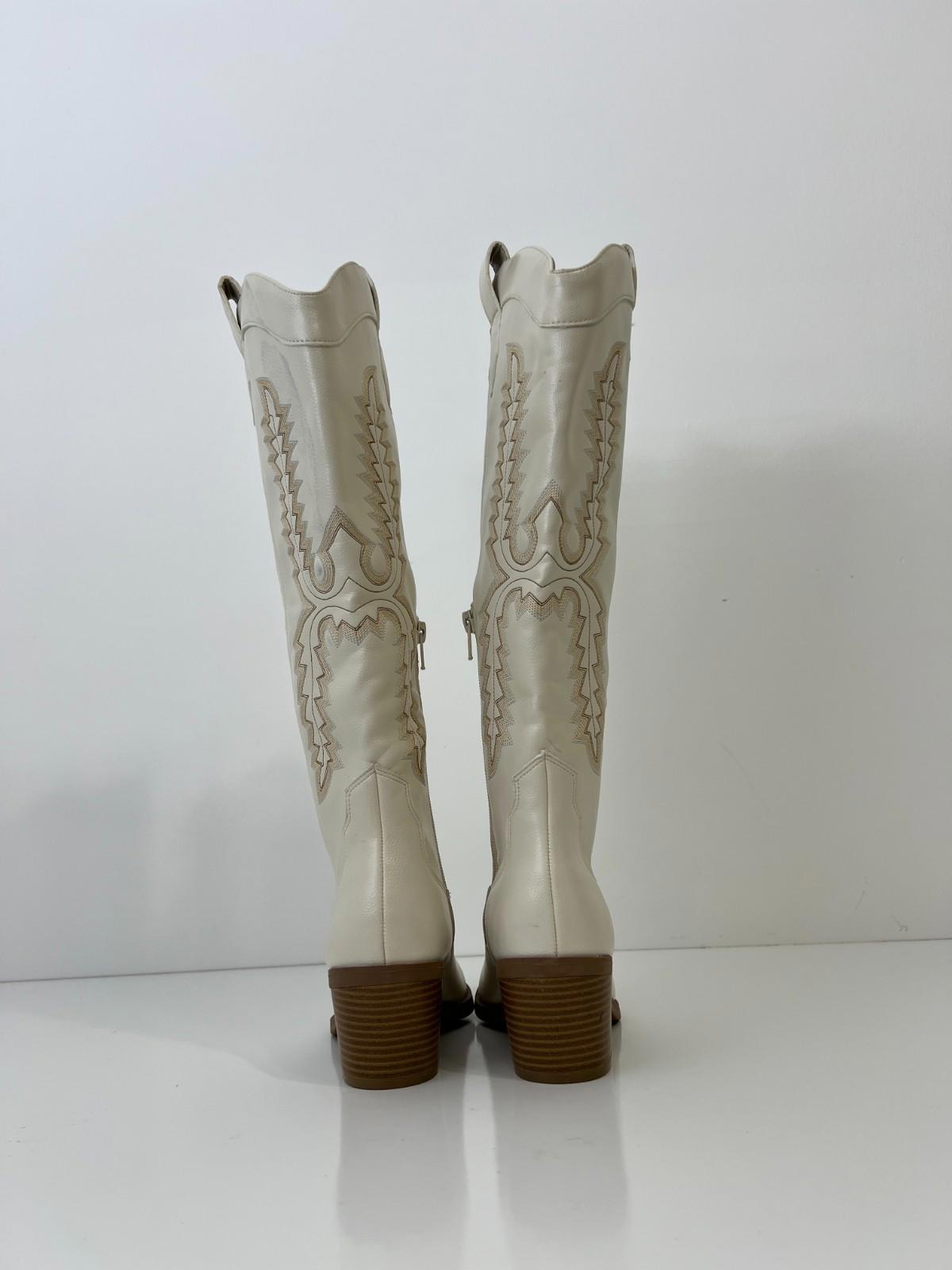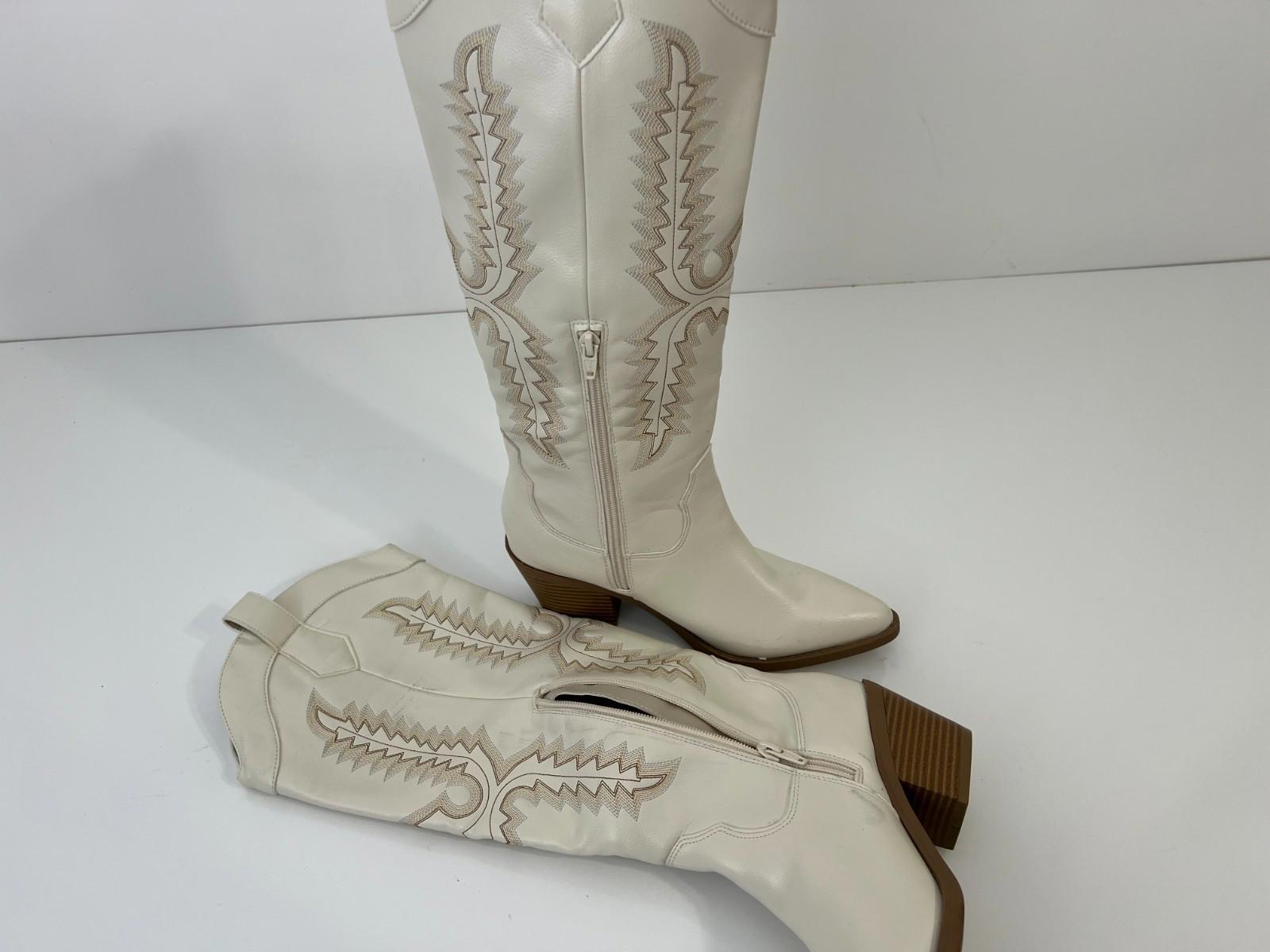 Sun + Stone Women's Bodhiii Western Knee High Boots, Size 6.5M - Ecru Sm