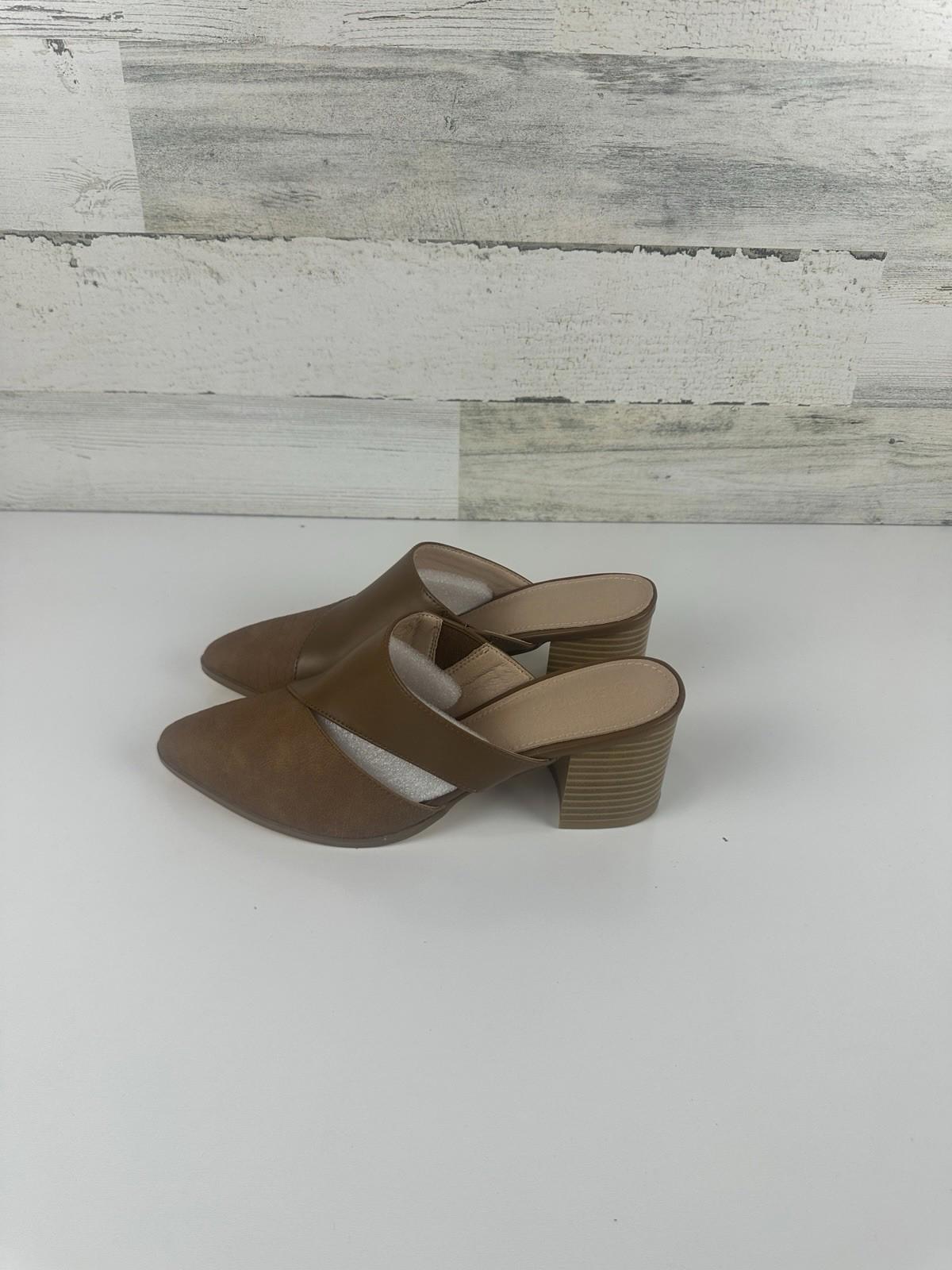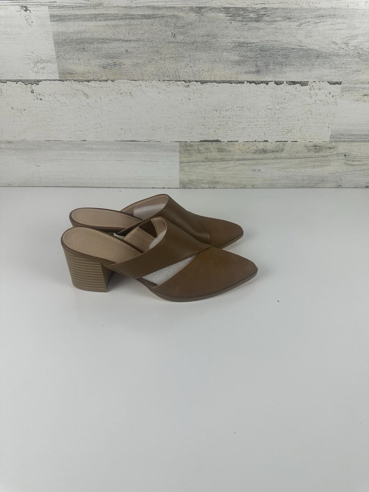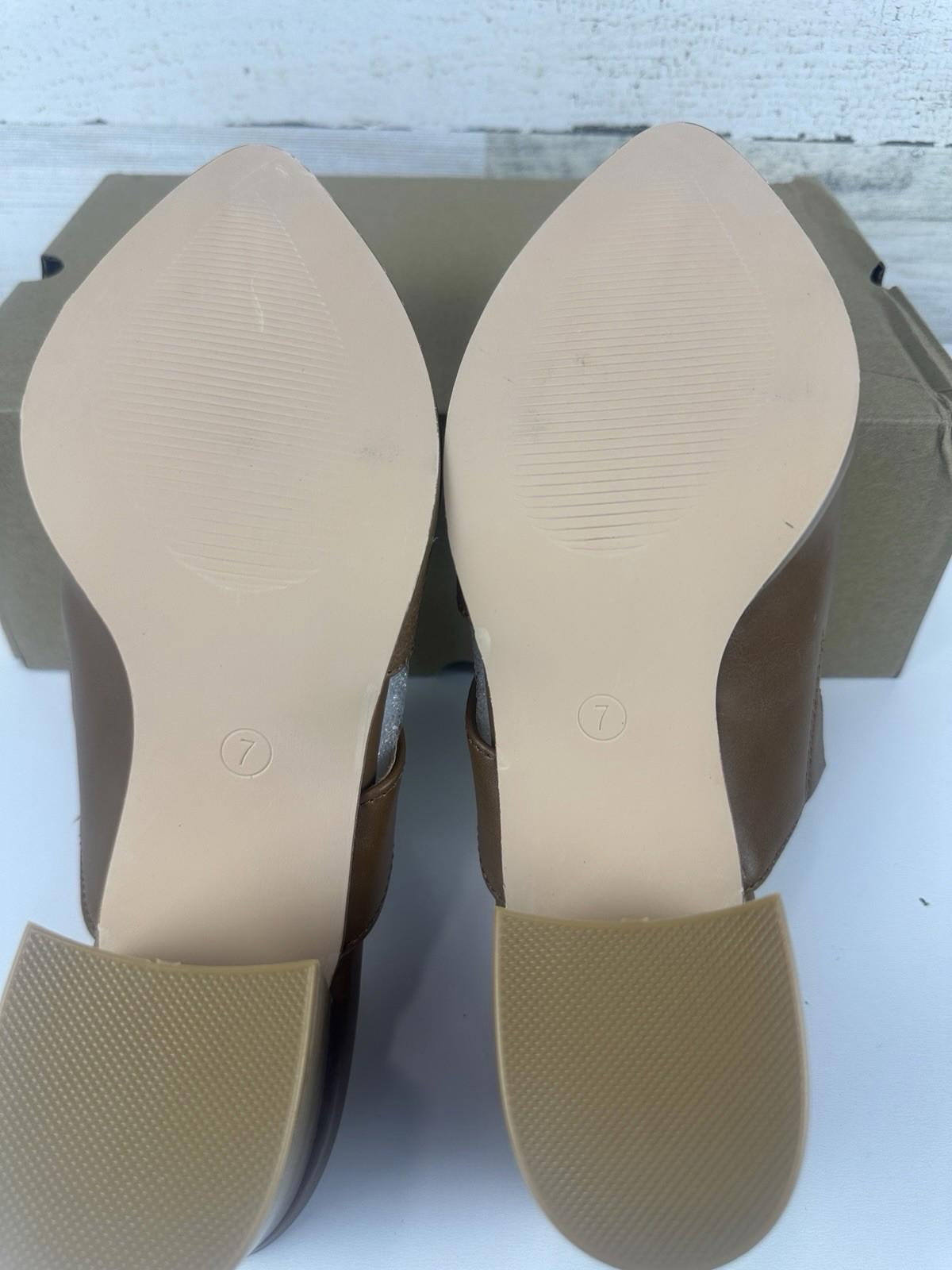 SYKTKMX Women’s Cutout Backless Stacked Closed Toe Heeled Mules Brown Size 7 NEW
