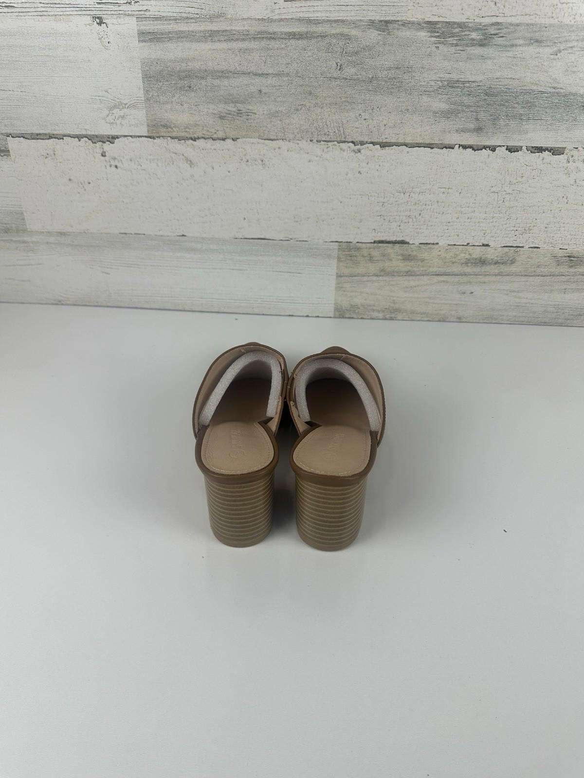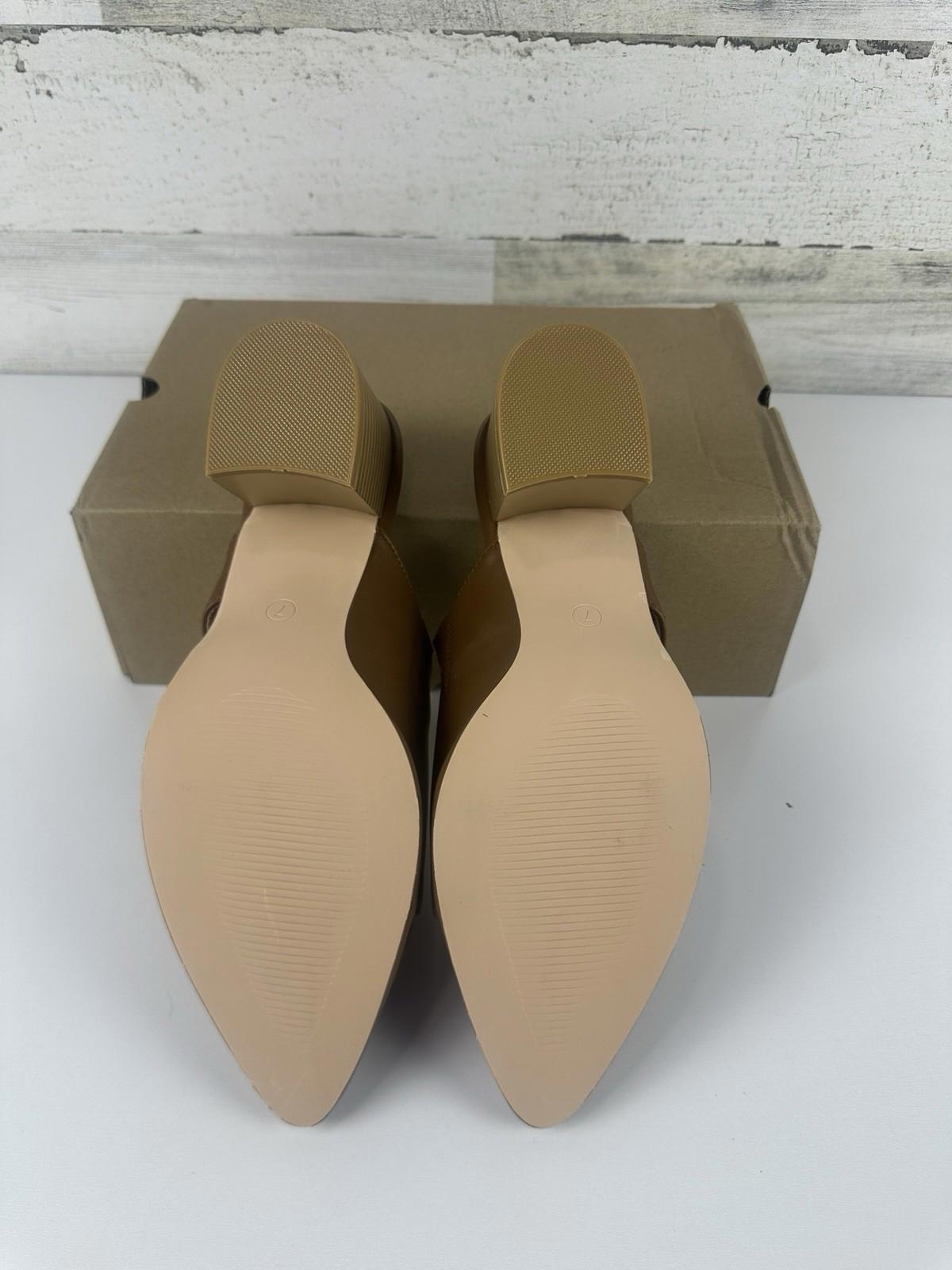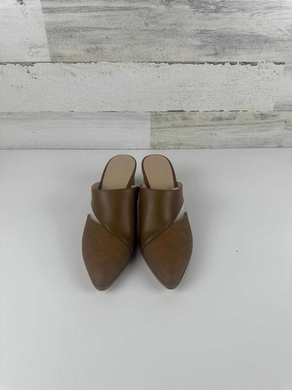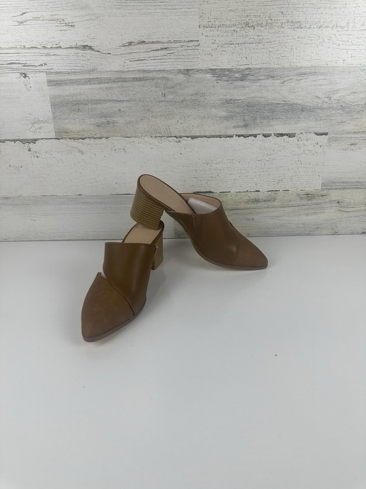 SYKTKMX Women’s Cutout Backless Stacked Closed Toe Heeled Mules Brown Size 7 NEW