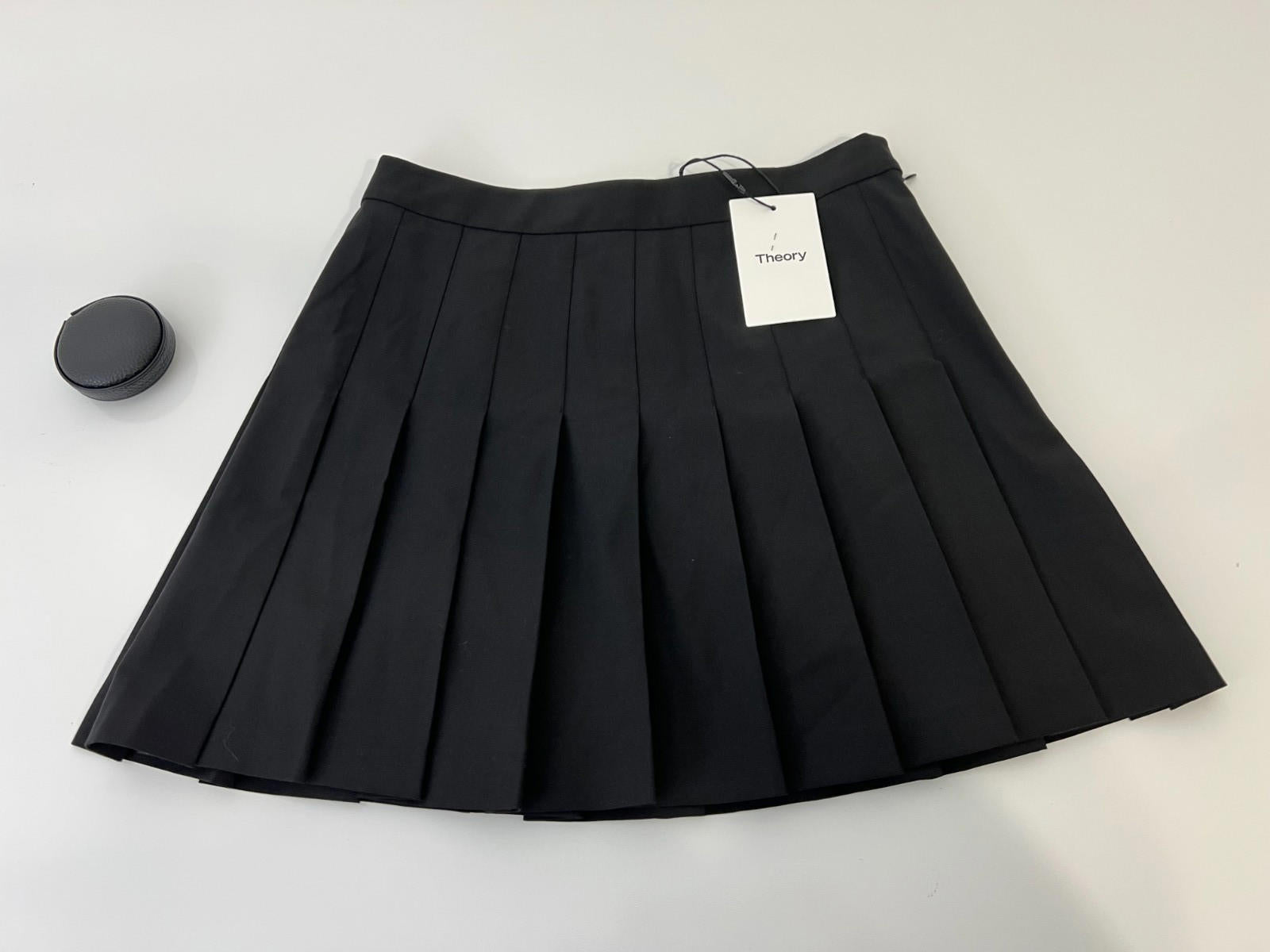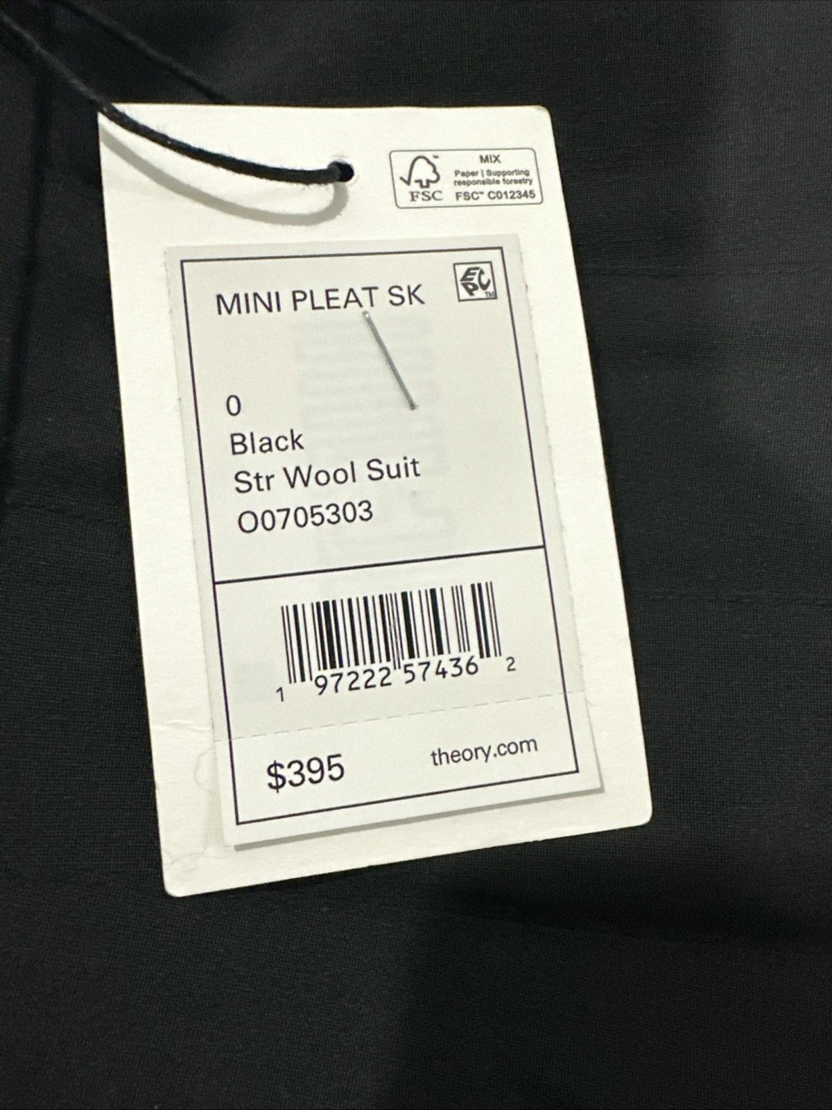 Theory Women's MINI Pleated Skirt , Black, Str Wool Suie O0705303, Size 0