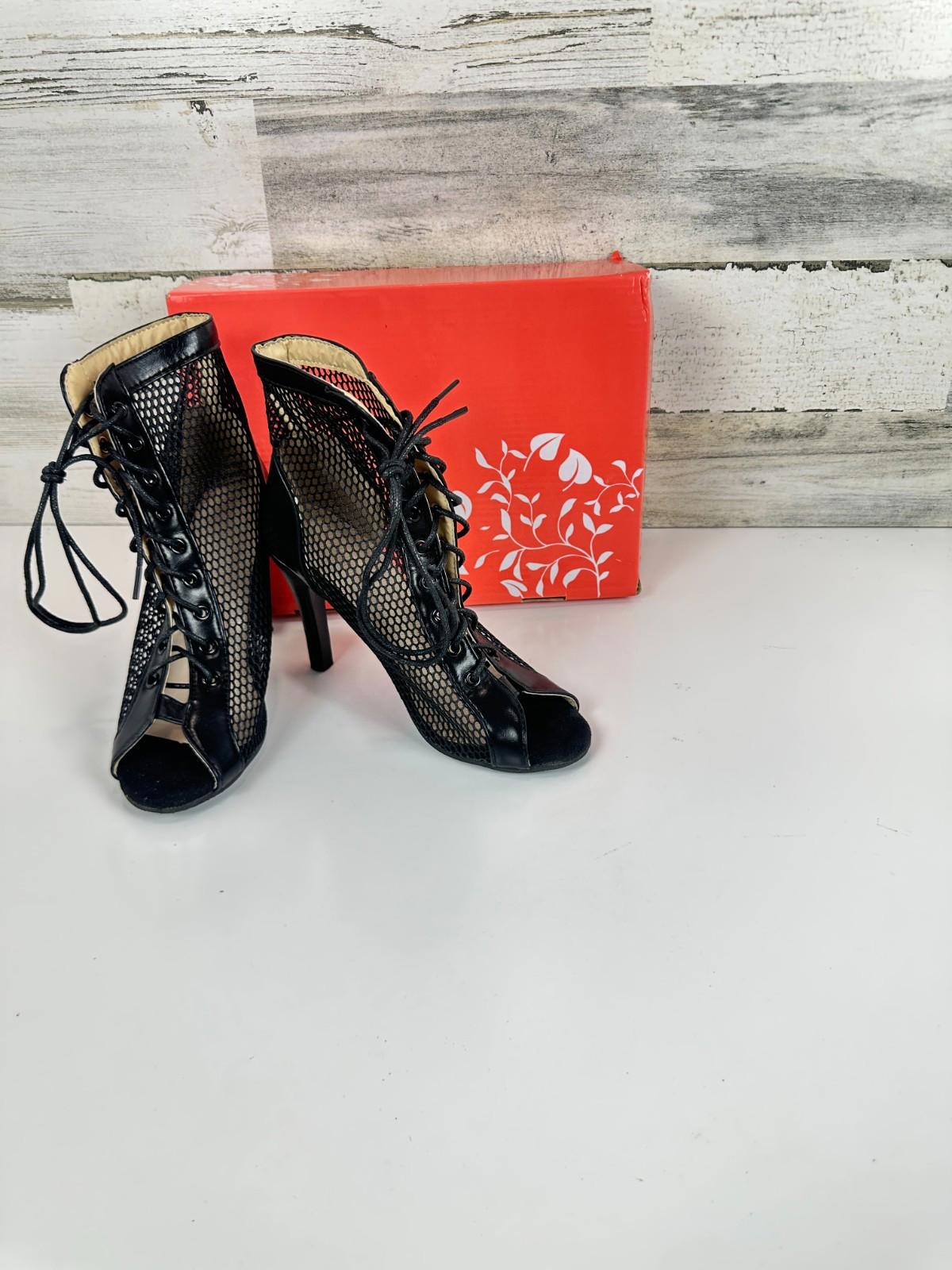 UTIKLIOU Women's Peep Toe Stilettos High Heel Sandals Lace Up Summer Boots, Sz 6