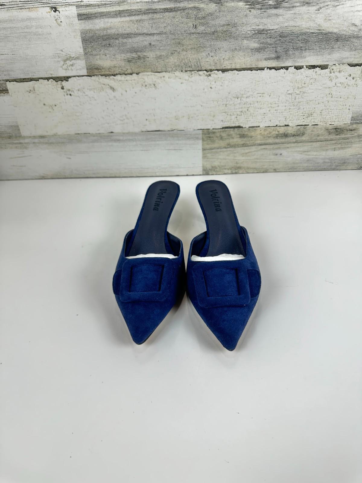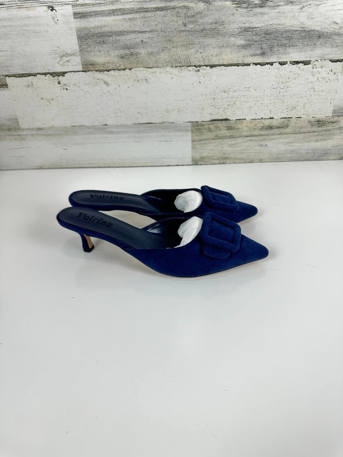 Volrina Kitten Heel Mules Sandals for Women Pointed toe Square Buckle, Size 11