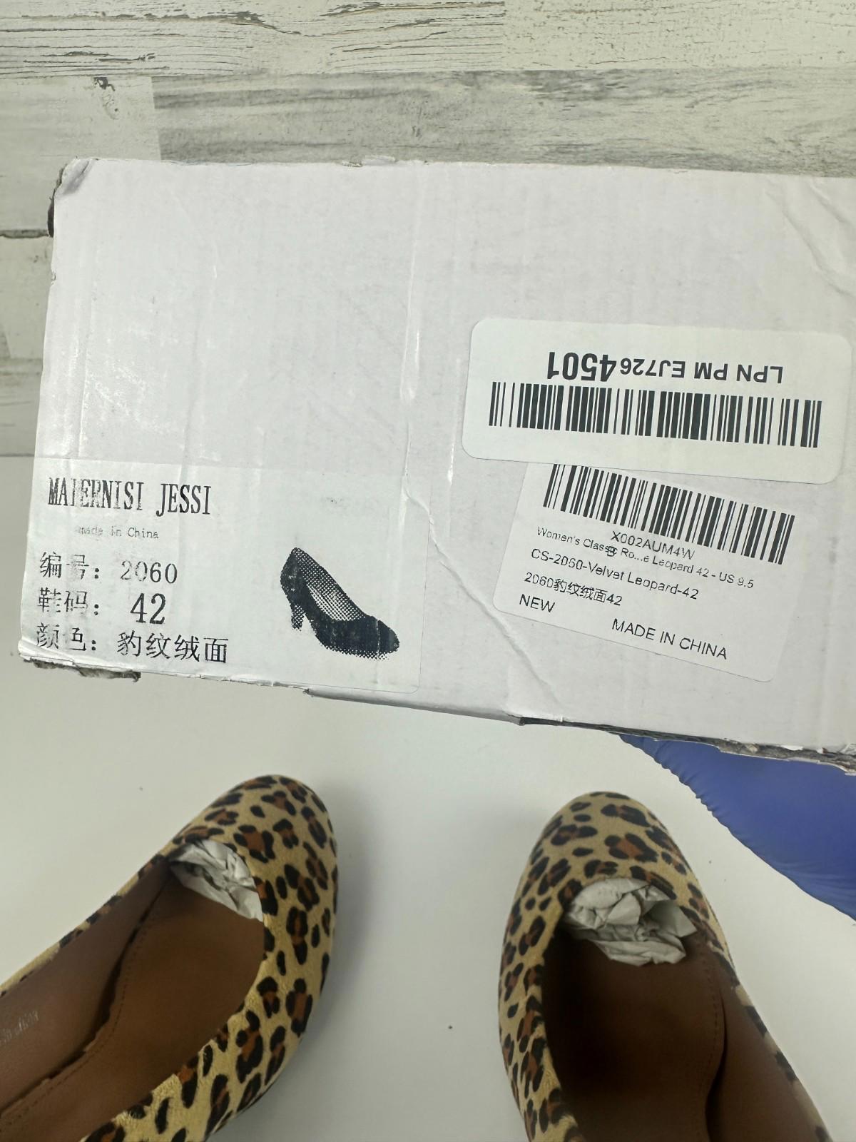 Women's Classic Round Toe Pump Kitten Low Heel Shoes Suede Leopard 42 - US 9.5 M